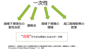 臨床で肩関節周囲炎炎症期術後早期の対応で、皆さんが1番考える夜間痛はこの”一次性”ではないでしょうか?